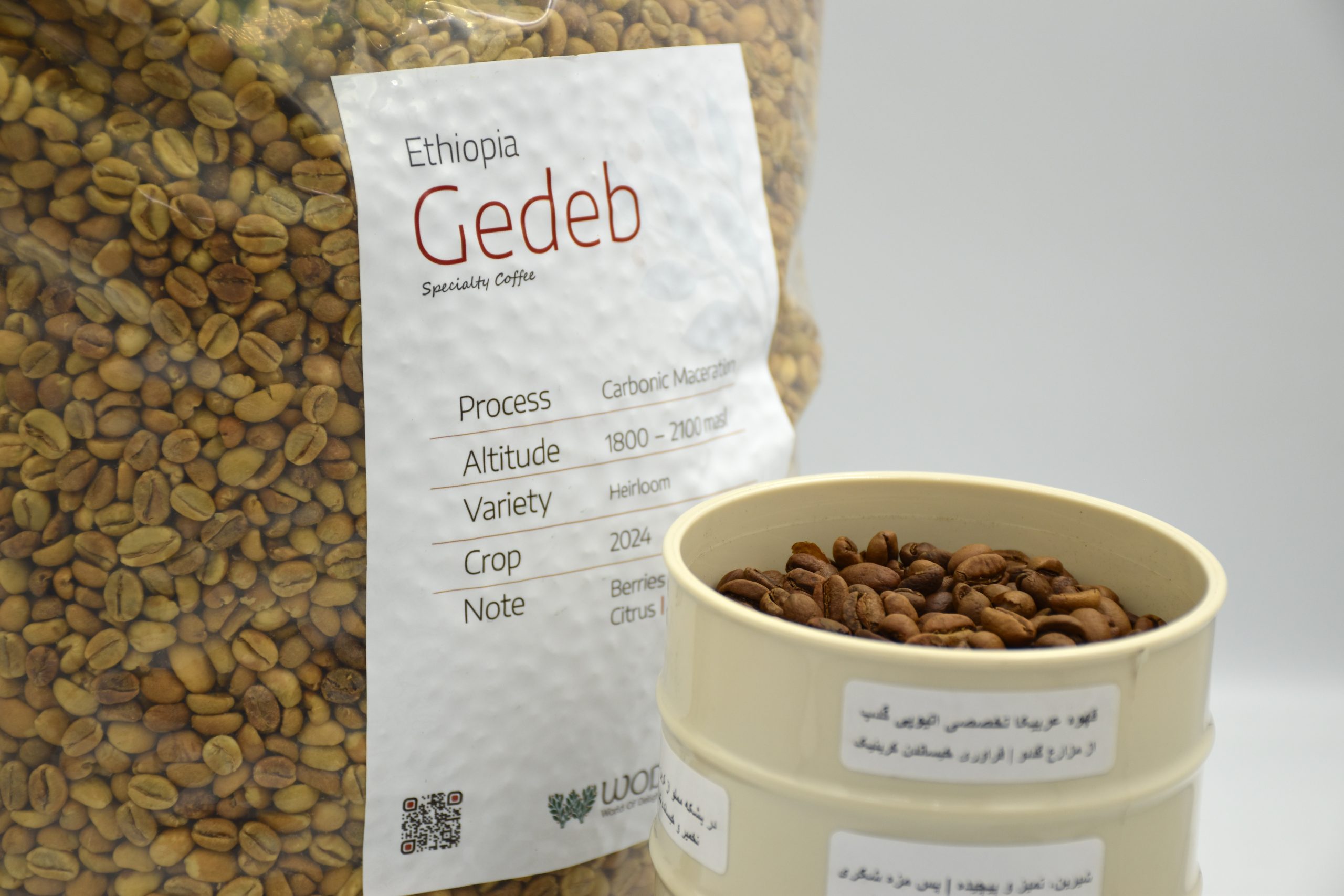قهوه تخصصی اتیوپی گِدِب (Ethiopia Gedeb) یکی از شاخصترین قهوههای تکخاستگاه جهان است که در ارتفاعات ۲۱۰۰ متری کشت میشود. این قهوه با فرآوری خاص خیساندن کربنیک (Carbonic Maceration) آماده میشود و طعمیادهایی از توت، مرکبات، هلو و شکر سفید را در فنجان به نمایش میگذارد. ترکیب ارتفاع بالا، خاک آتشفشانی غنی و روش فرآوری نوآورانه، این قهوه را به انتخابی ممتاز برای دوستداران قهوه تخصصی تبدیل کرده است.
